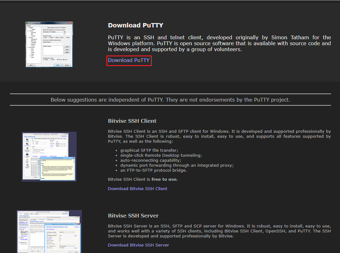 Is Bitvise affiliated with PuTTY? Bitvise is not affiliated with PuTTY. We develop our SSH Server for Windows, which is compatible with PuTTY. Many PuTTY users are therefore our users as well. From time to time, they need to find the PuTTY download link. W