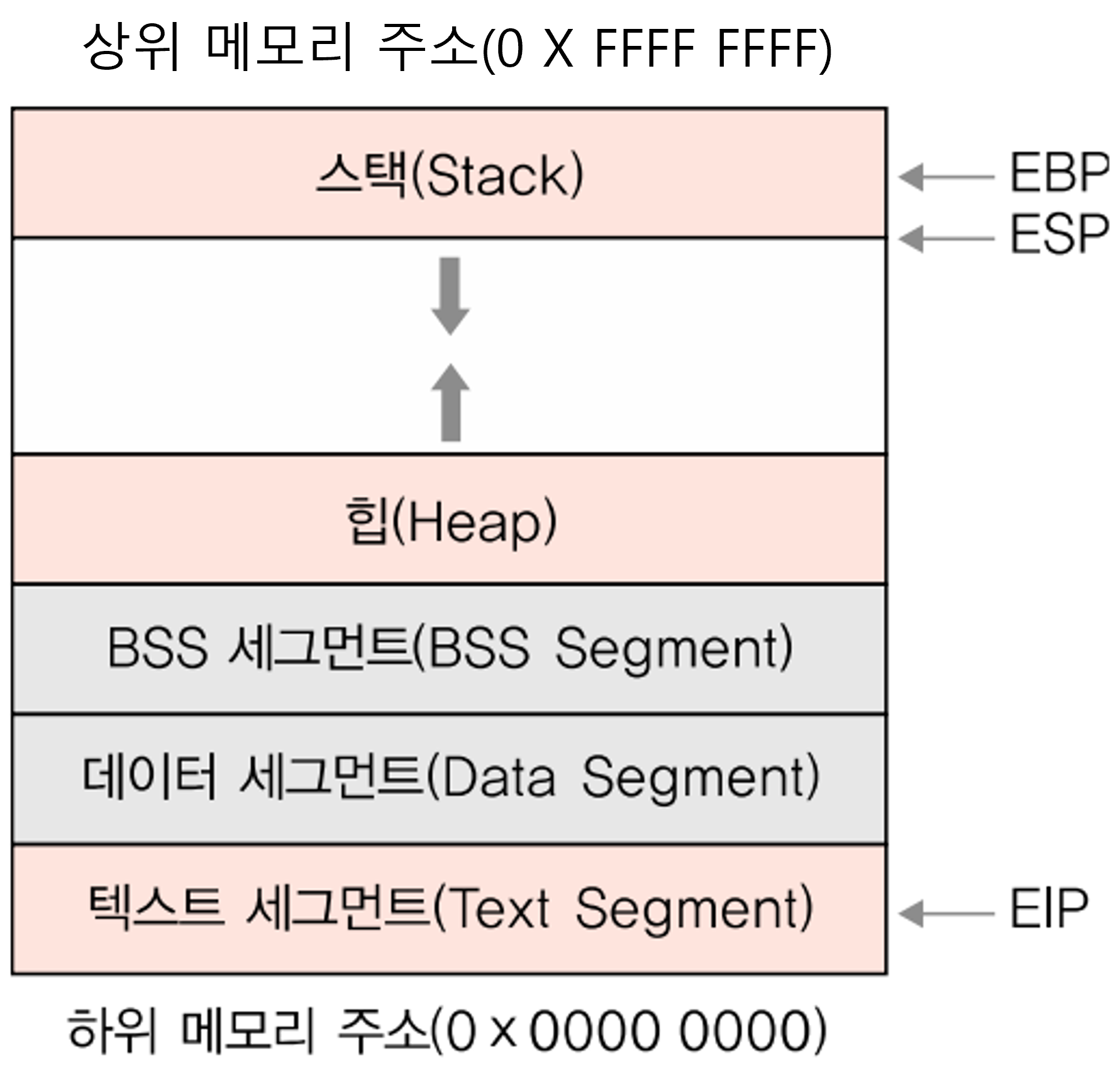 - 아래 그림과 같이 스택은 커지고, 스택 포인터(Stack Pointer)는 데이터 크기만큼 감소