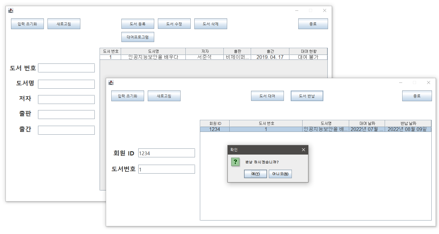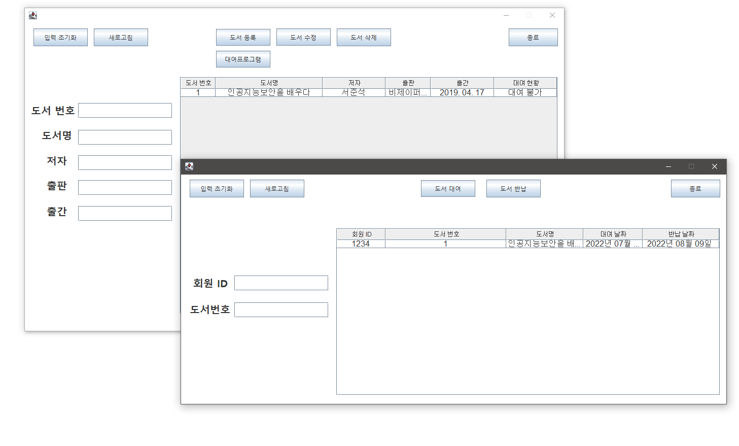 Part3. 대여프로그램에서는 대여프로그램 버튼 클릭시 나타나는 GUI 에 관련하여 설명하겠습니다.