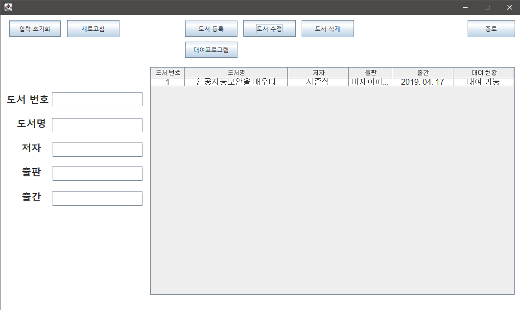 window.frame.setVisible(true); // 도서관리 GUI 화면 나타남