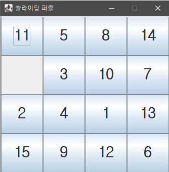 Swing을 이용하여 슬라이딩 퍼즐 GUI를 만들었습니다.