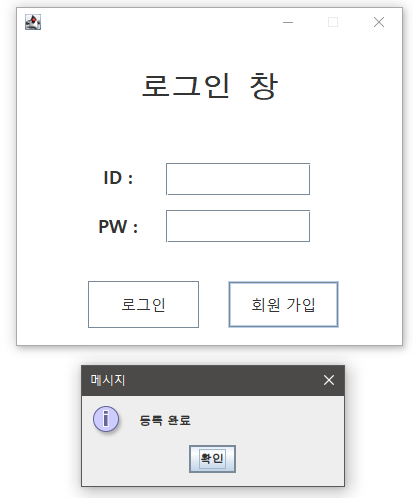 JOptionPane.showMessageDialog(null, "삭제 완료");