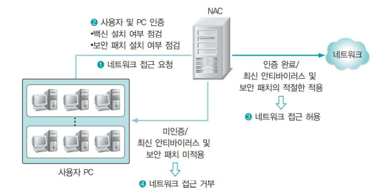 보안 정책을 제대로 준수하지 않거나 바이러스에 감염되었을 때는 네트워크 접근이 거부되고 네트워크에서 격리됨