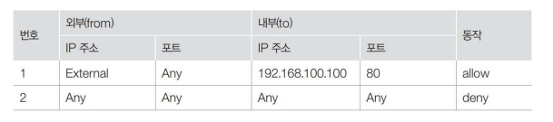 접근 제어를 수행하는 룰셋은 방화벽을 기준으로 보호하려는 네트워크의 외부와 내부에 존재하는 시스템의 IP 주소와 포트로 구성