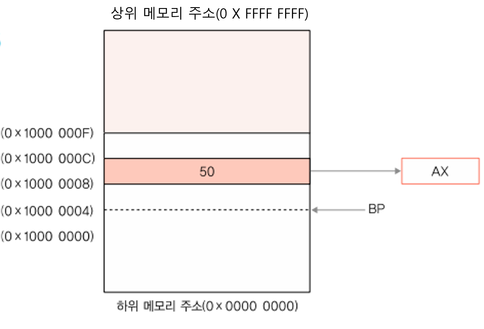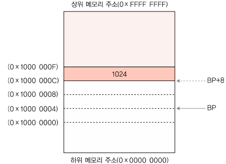 - BP의 현재 값이 0x10000004라면, BP+8은 0x1000000C
