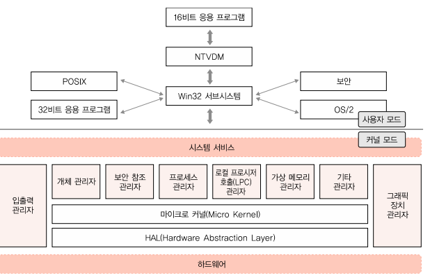 - 크게 파일 서브 시스템, 장치 드라이버, 프로세스 제어로 나뉘며, 커널의 파일 크기 또한 윈도우의 1/3 정도