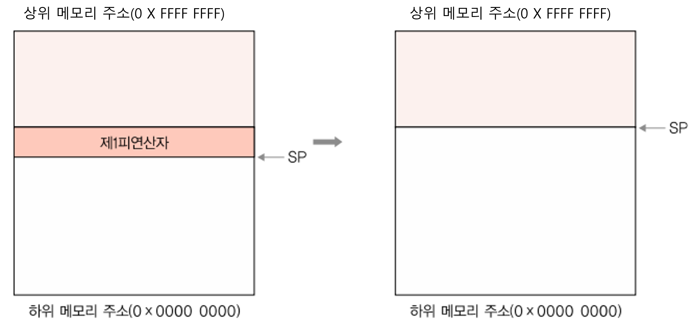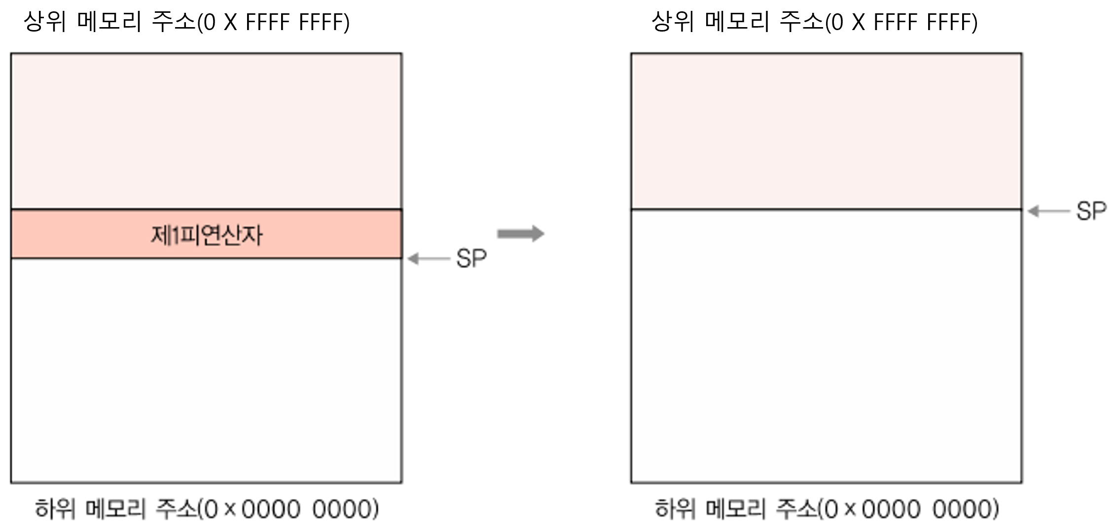 - 아래 그림과 같이 스택 포인터는 삭제하는 데이터 크기만큼 증가