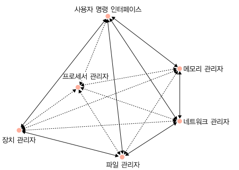 - 프로세스 제어: 전체 프로세스 간 통신, 스케줄링, 메모리 관리 구현