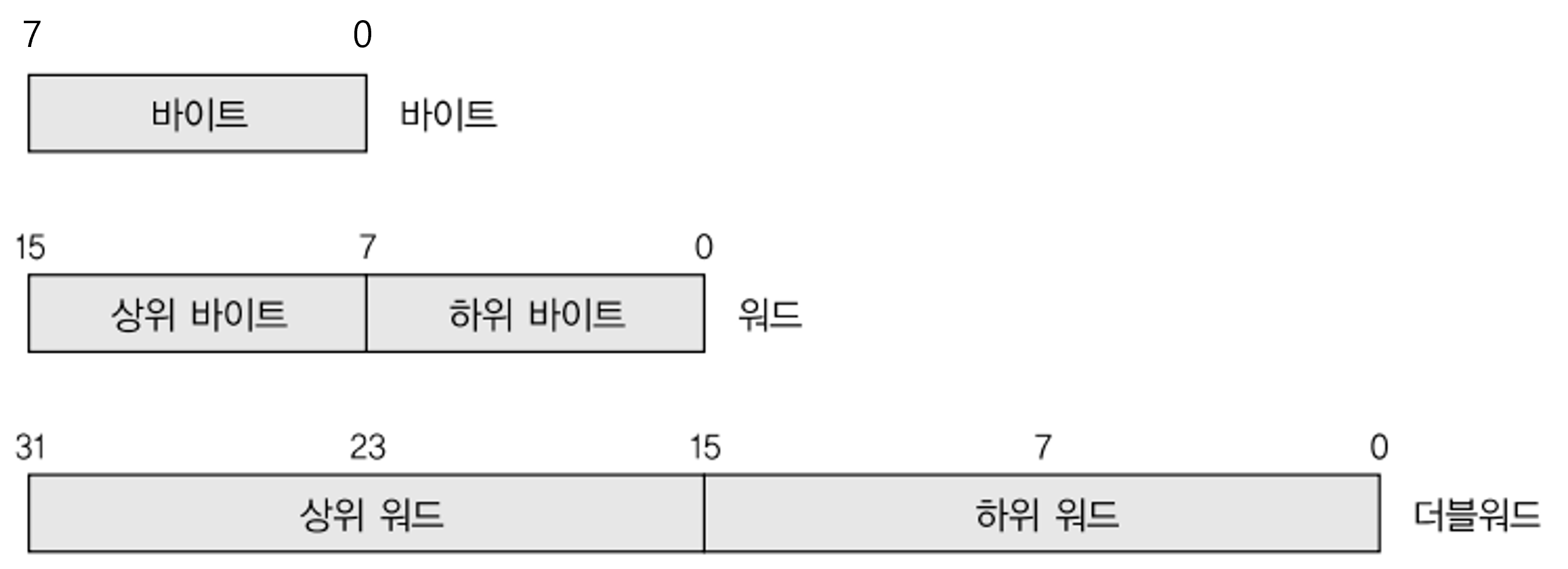 - 메모리, 범용 레지스터, 세그먼트 레지스터로 참조되는 주소에 존재하는 데이터 전송