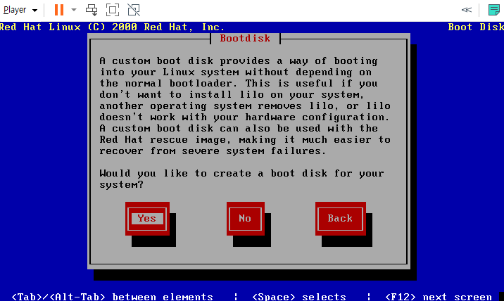 시스템의 부팅 디스크를 생성하는 물음인데, No 를 클릭합니다.